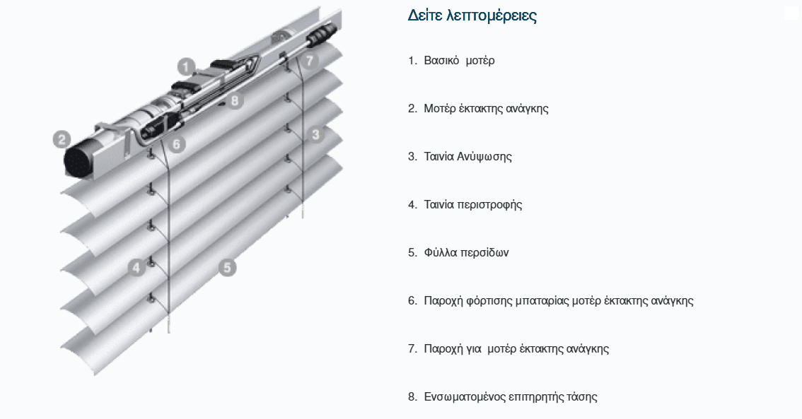 Σε περίπτωση έκτακτης ανάγκης, οι εξωτερικές περσίδες ανασύρονται εξαιρετικά γρήγορα με ταχύτητα 1 μέτρο/sec.